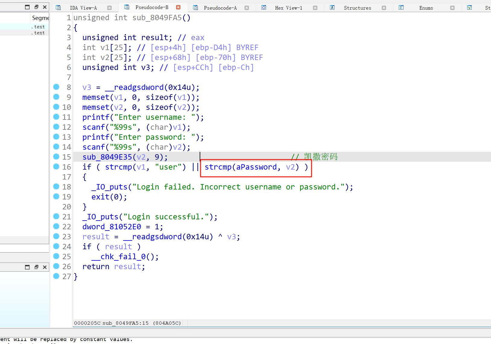 直接绕过就行了,他不是跟passwrd字符串进行比对,gdb动态调试即可得到,然后凯撒加密处理一下即可登录成功