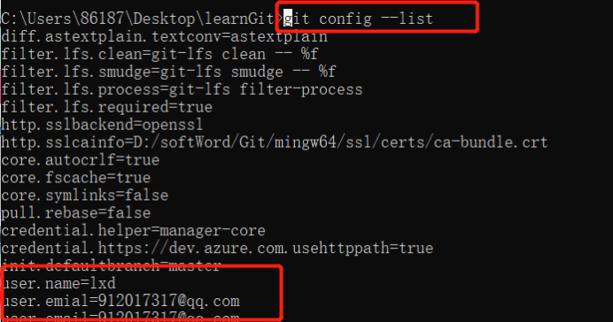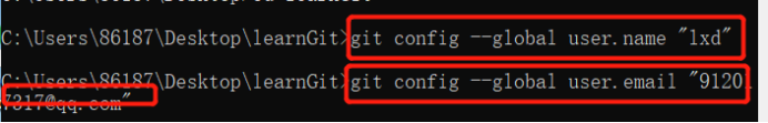 ②、设置用户邮箱git config --global user.email “xxx”