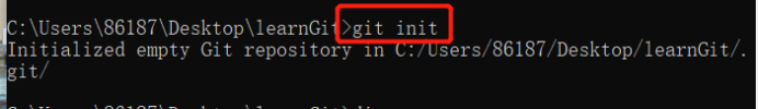 B、控制台输入命令开始初始化(git init)git init learrnGit#创建本地⽂件夹并且同时创建本地仓库。