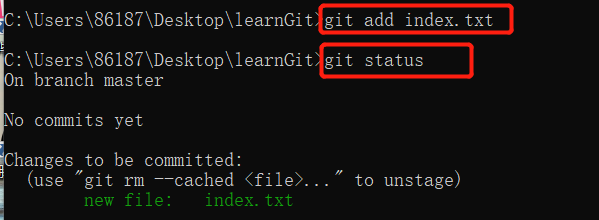 ②、add文件至暂存区,并进行验证是否成功