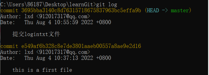 • git log --oneline #查看简陋的信息