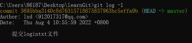 • git log -1 #显示最新的一条提交记录信息