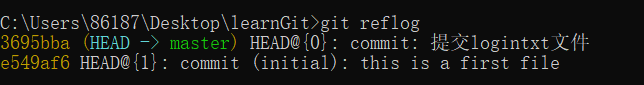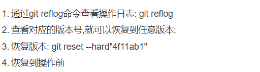 • git reflog #记录git所有的操作,包含了提交以及回退