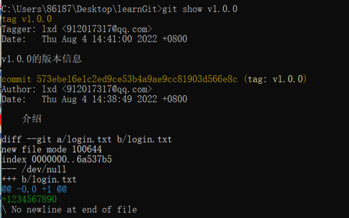 • git show tagName #查看标签的具体详细的信息