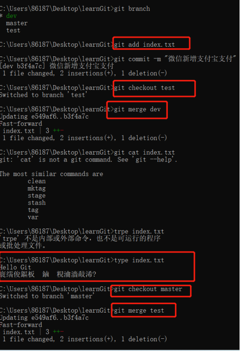 A、桌面创建文件夹learnGit