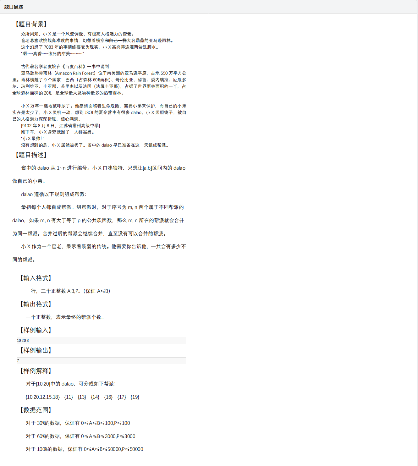 将有公共质因数的几个数放在一个集合里,最后判断即可。