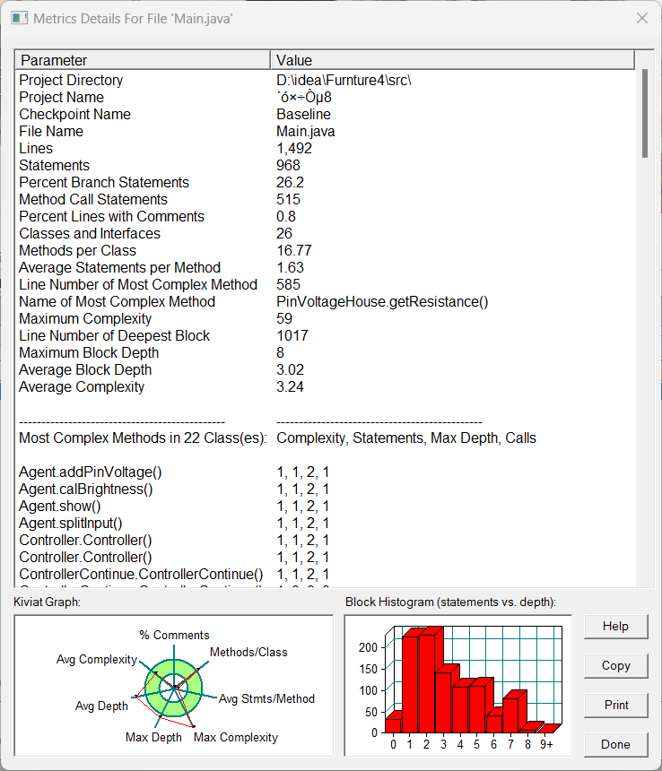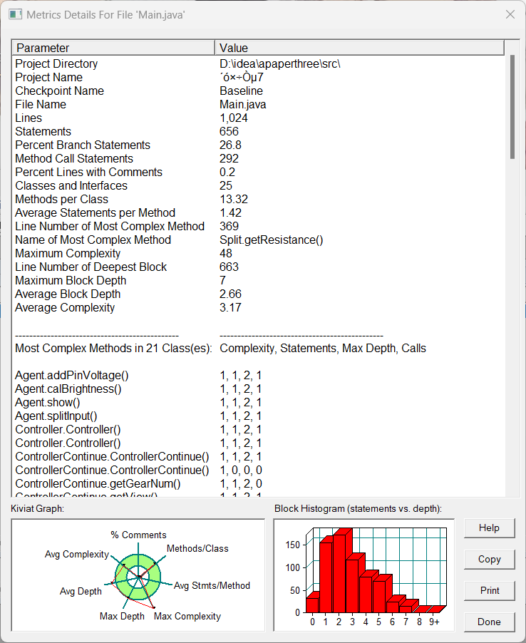 1.从复杂度分析可以看出此次代码的设计并不算特别合理。代码深度Max Depth相较于上次有所降低,但仍然在边缘线上。