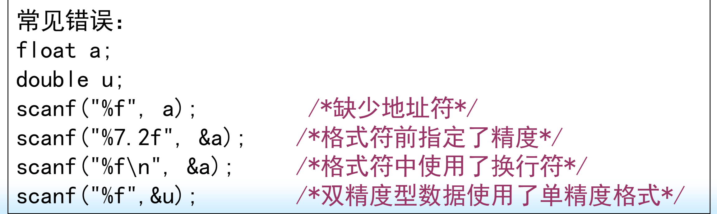 采用正确的格式输入数据,是程序运行正确的基础,