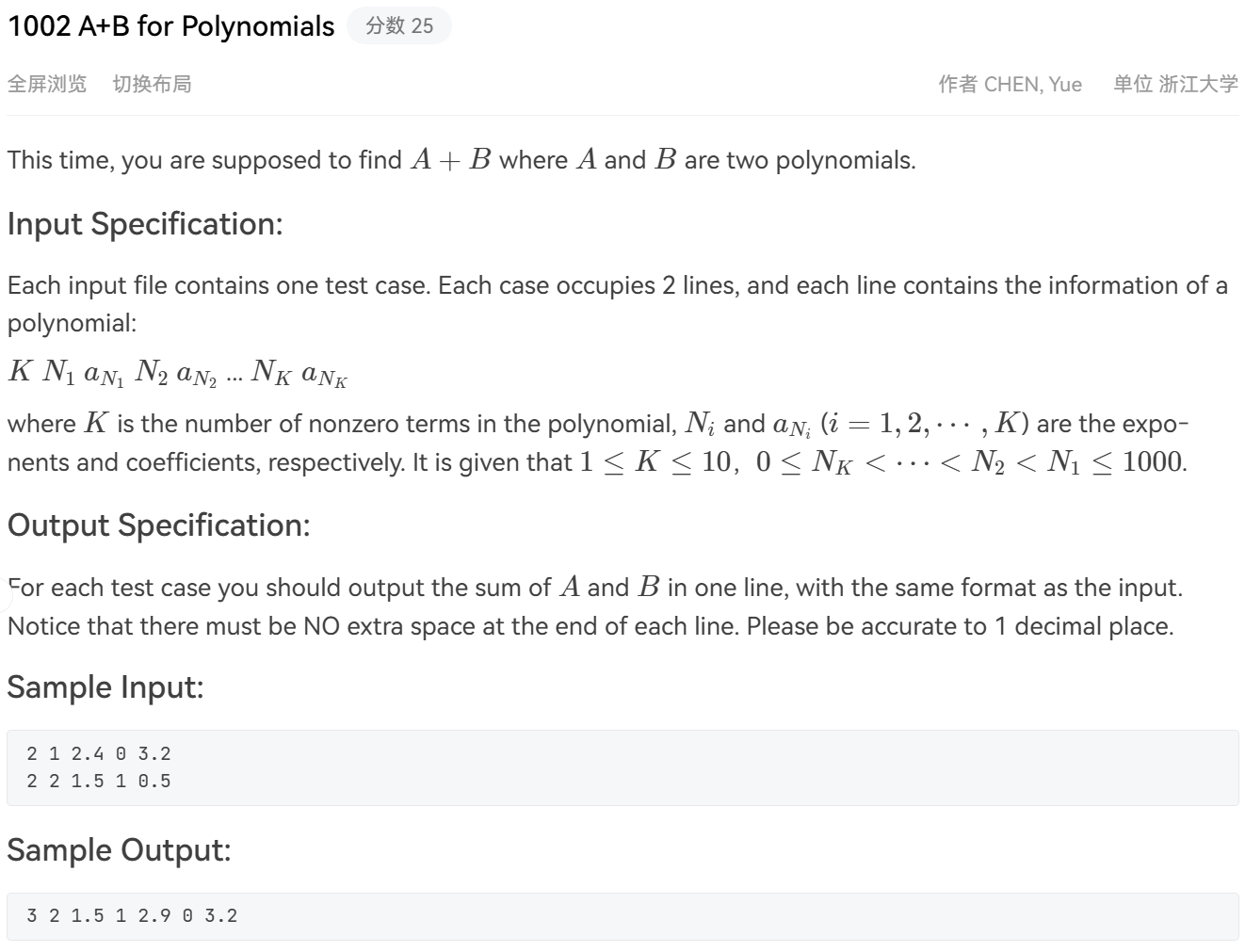 // 读取第一个多项式
