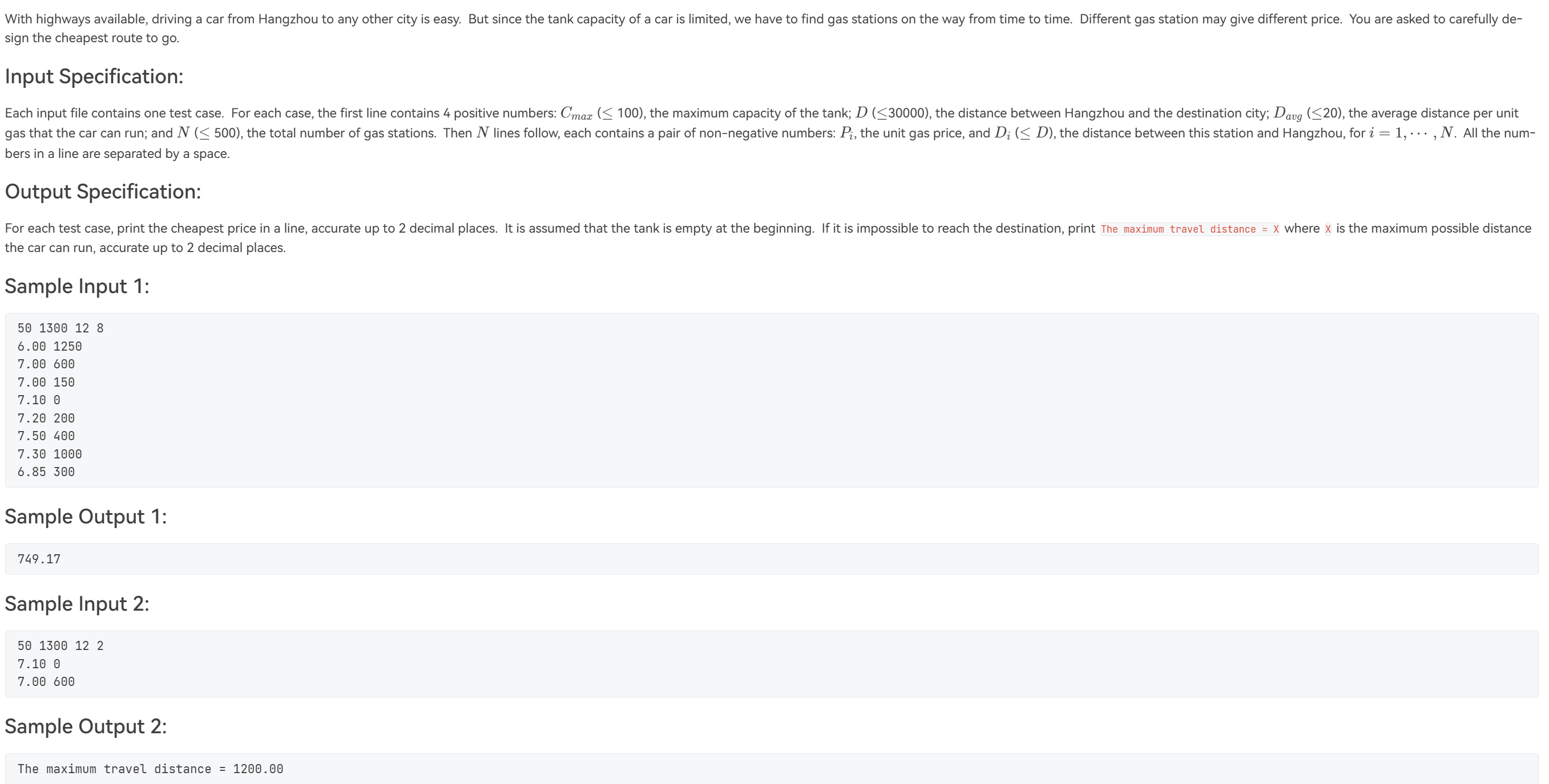 PAT甲级——1033 To Fill or Not to Fill——分数 25