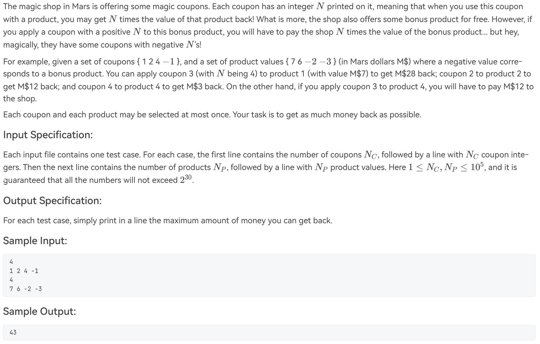 题目大意:求两个数组各元素之积的和的最大值,所有元素只能用一次