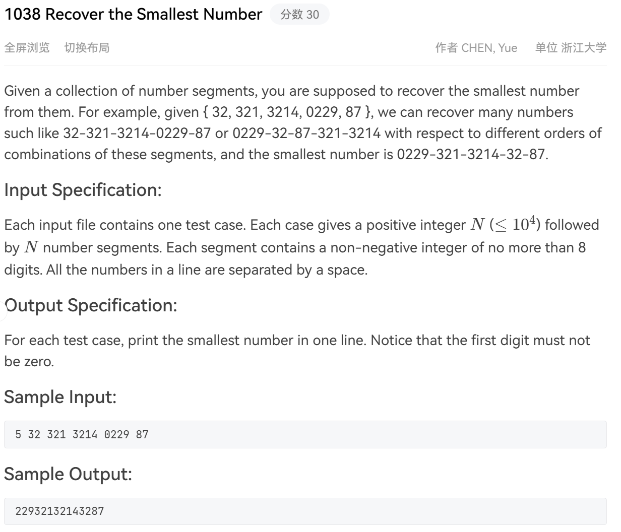 PAT甲级——1038 Recover the Smallest Number——分数 30
