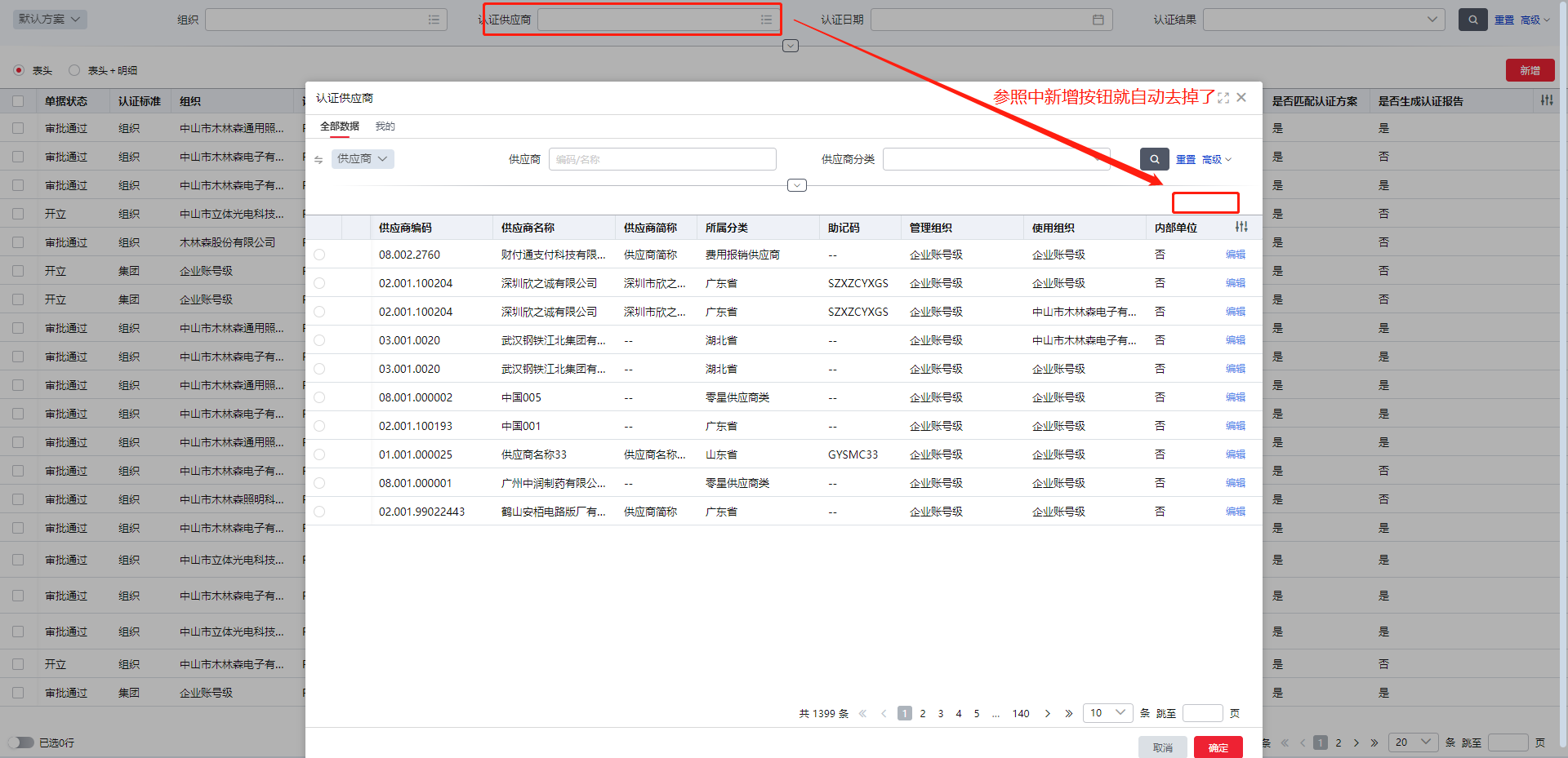 BIP去掉弹框中的参照的新增按钮(列表页面)