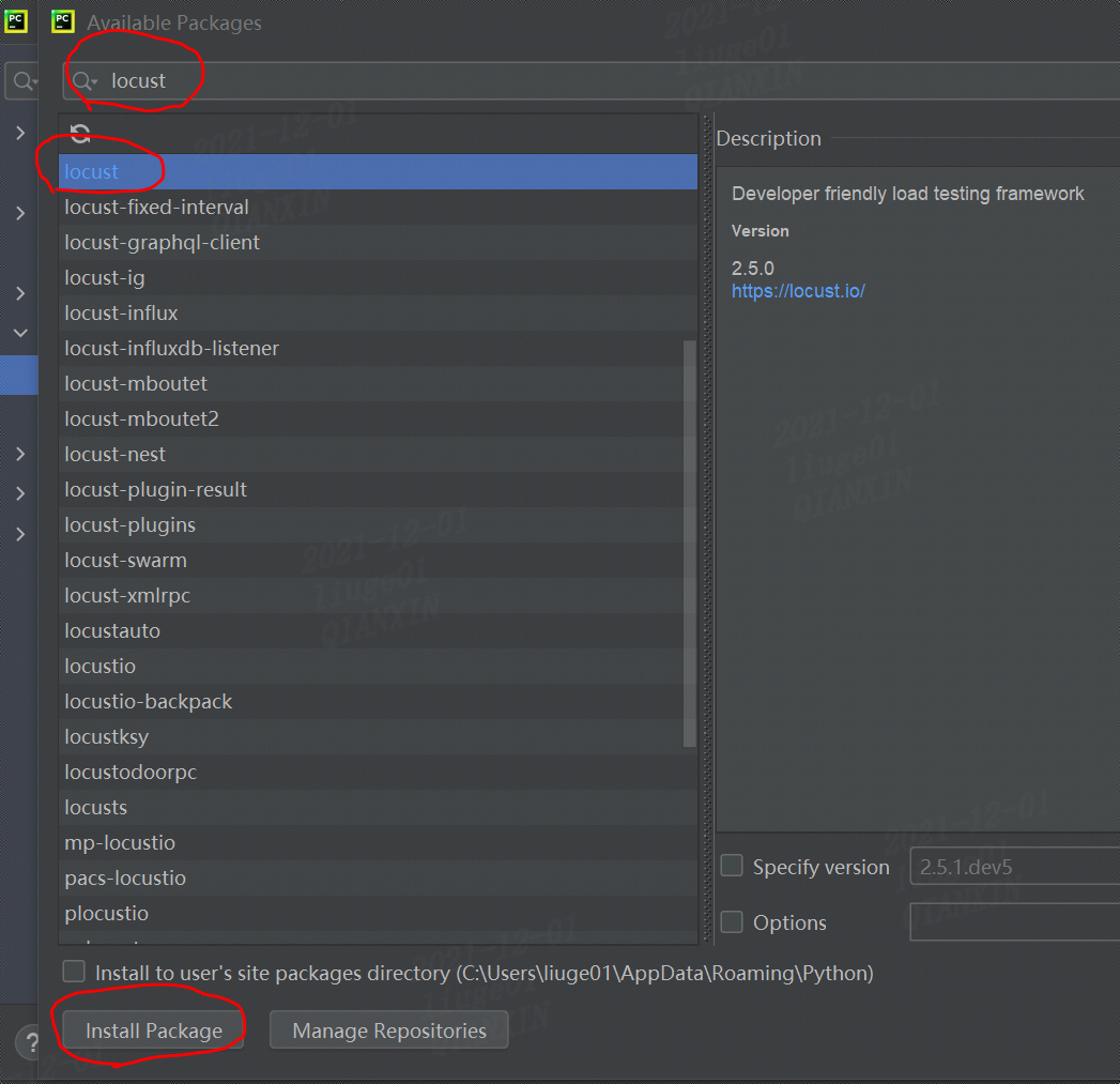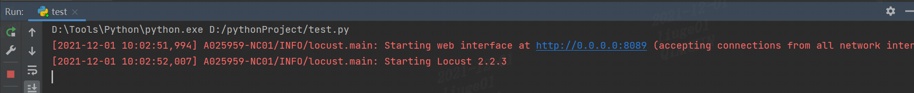 2. 新建python项目和文件test.py。在pycharm中配置locust