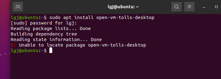 后来又新开了一个命令行去运行sudo apt install open-vm-tolls-desktop命令(支持桌面环境的双向拖放文件),结果又报错。