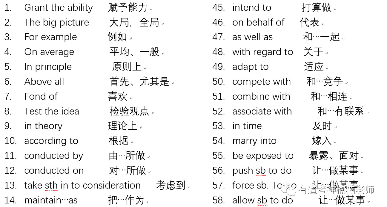 英语常见固定搭配