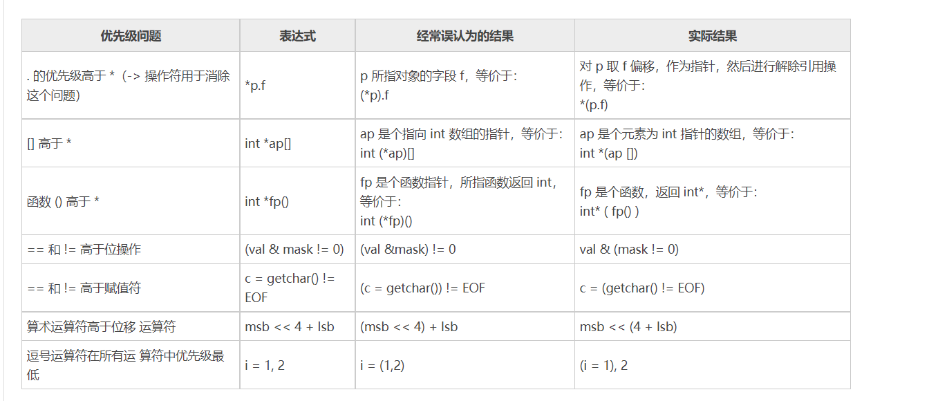 - 另外两个从右往左结合的运算符也很好记,因为它们很特殊:一个是单目运算符,一个是三目运算符。