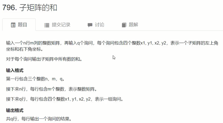 ans =s[x2][y2]-s[x1-1][y2]-s[x2][y1-1]+s[x1-1][y1-1];//计算区间内部数值和