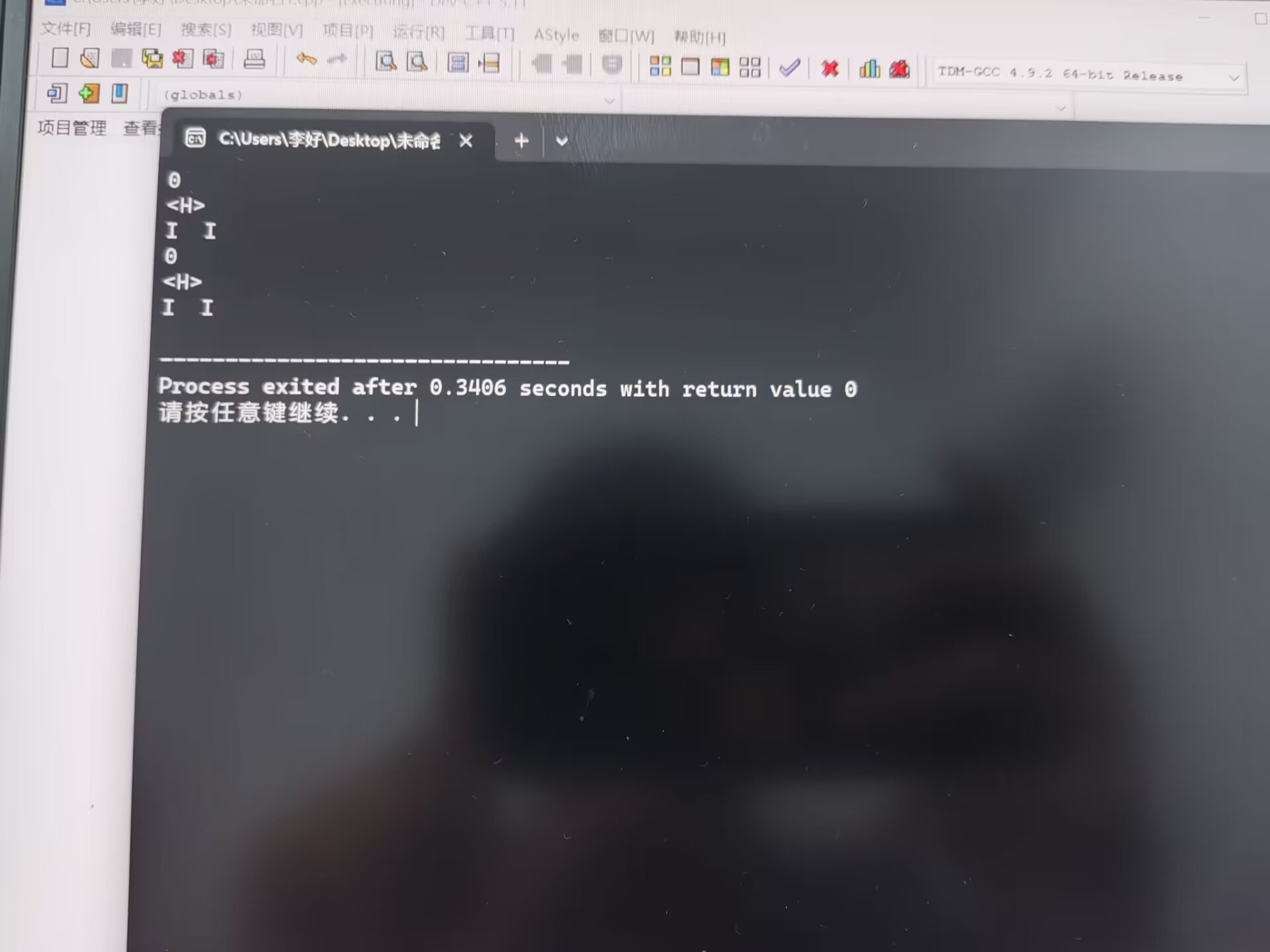 #include<stdio.h> int main() { printf("0\n"); printf("<H>\n"); printf("I I\n"); printf("0\n"); printf("<H>\n"); printf("I I\n"); return 0; }