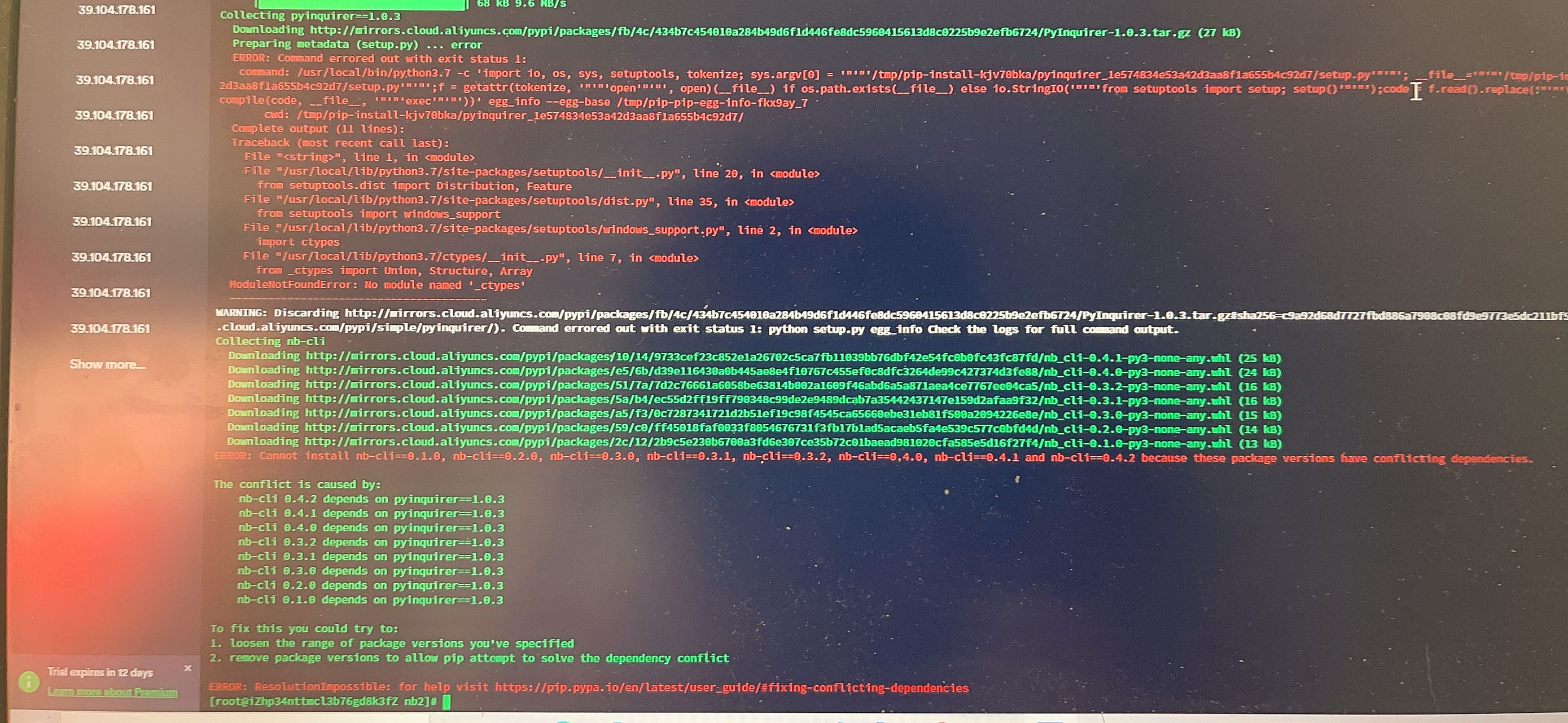 可以看到我的PYTHON 版本不对,必须要3.7以上