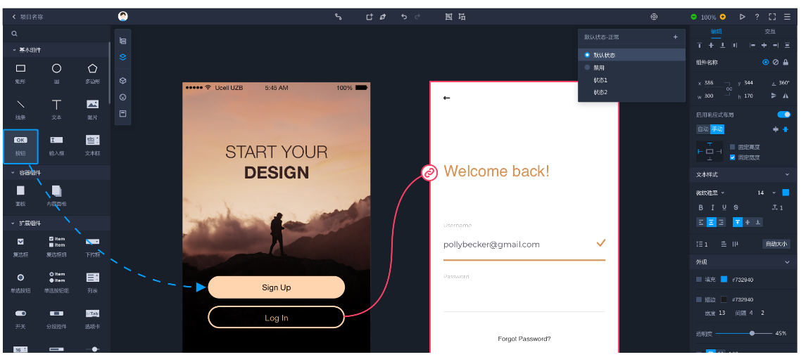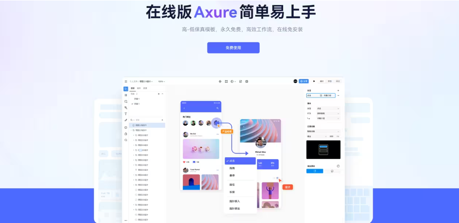 功能全面:支持从低保真线框图到高保真原型的设计,适用于复杂交互和动态内容的创建。
