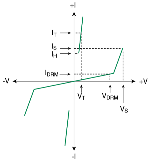 Vs@100V/us(转折电压)为77V,Vdrm(峰值闭态电压)为58V,Vt(开启电压)为4V。