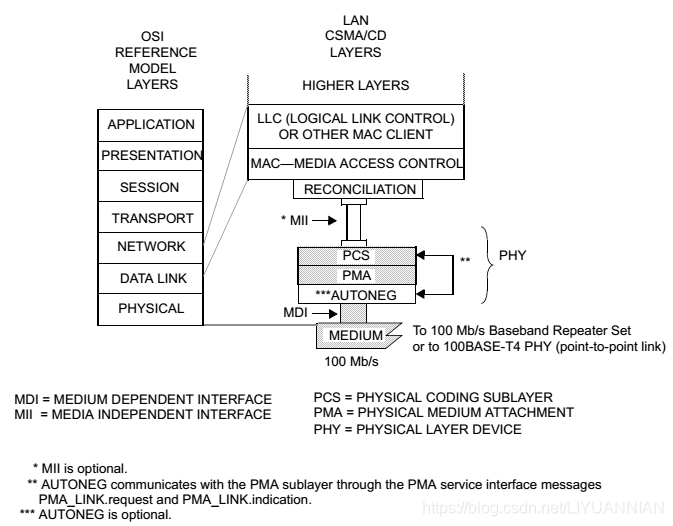 图1 100BASE-T4 PHY与OSI参考模型的对应关系