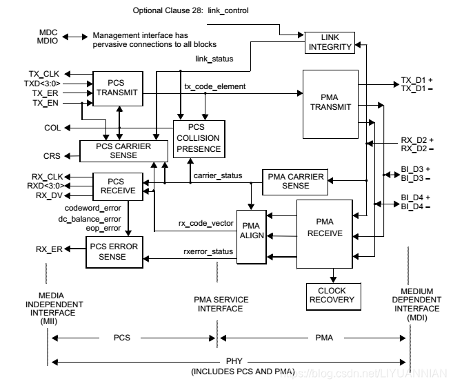 2)PMA RECEIVE接收外部过来的ternary symbols,最终将它们解码成nibbles,传给MAC,更详细的流程可以参考下图,或者阅读802.3协议section 2的部分。
