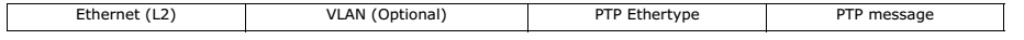 - PTP Ports工作在MAC层,即是说PTP message在以太网帧中封装,使用下图的格式: