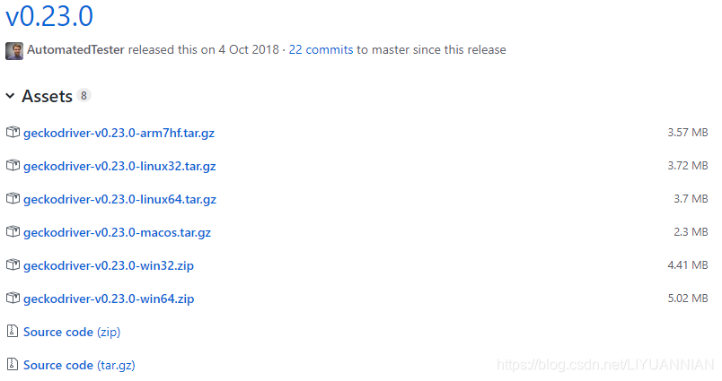 图1 Github上的geckodriver.exe下载界面