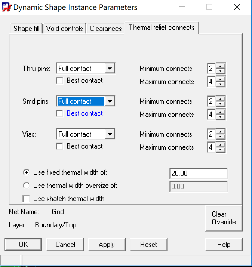 在Thermal relief connects中设置Smd pins为Full contact,最终的效果如下图所示。