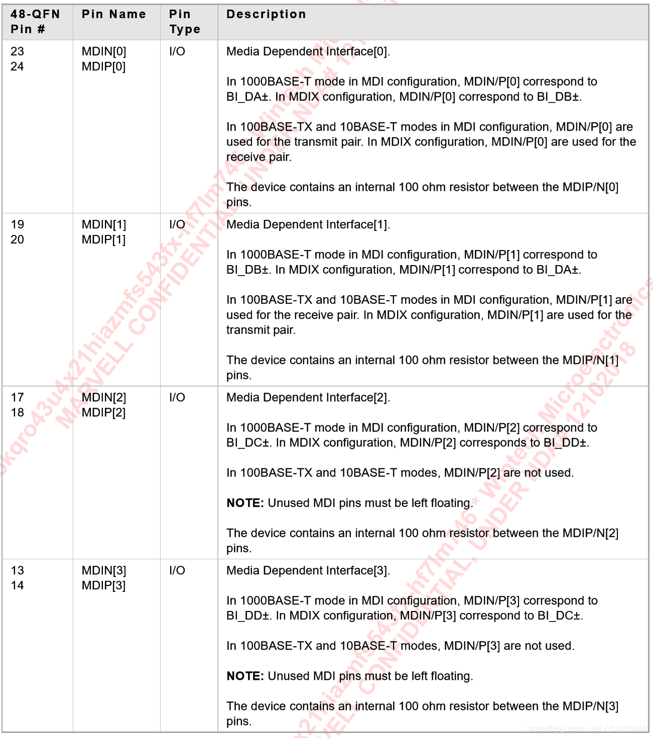 下图为88E1512(千兆PHY)的MDI信号的描述。