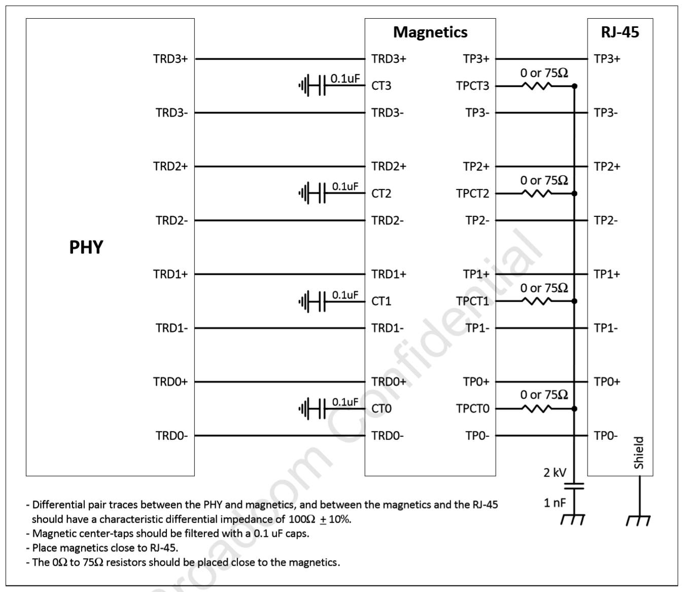 10. 下图中,TXP和TXN、RXP和RXN的49.9Ω电阻必须靠近PHY放置,这符合第3条规则。