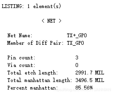 下图中显示TX+_GP0网络的Total Etch Length = 2991.7mil,就对应上上图TX+_GP0的Length。
