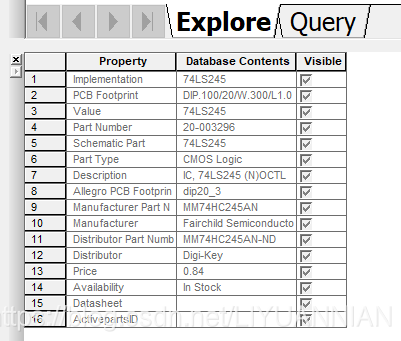 上图中,当元件的某一属性勾选Visible,那么在原理图中放置该元件时这一属性就会出现在原理图中,上图中默认勾选了所有属性的Visible,它的设置方法如下: