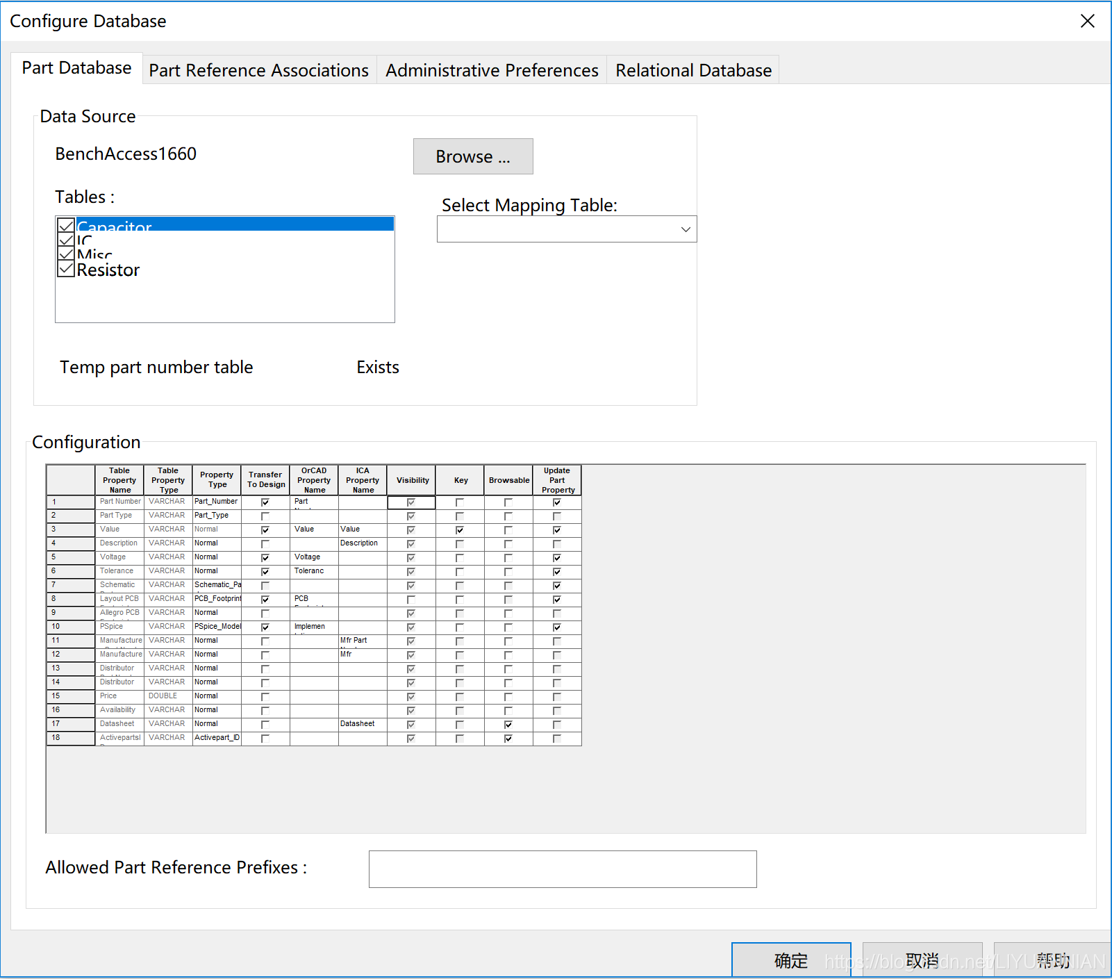 在Tables中选择表,比如选择Capacitor,在Configuration中有个Visibility属性,勾选某一属性,意味着Capacitor的该属性默认会出现在原理图中,根据公司要求选择即可。