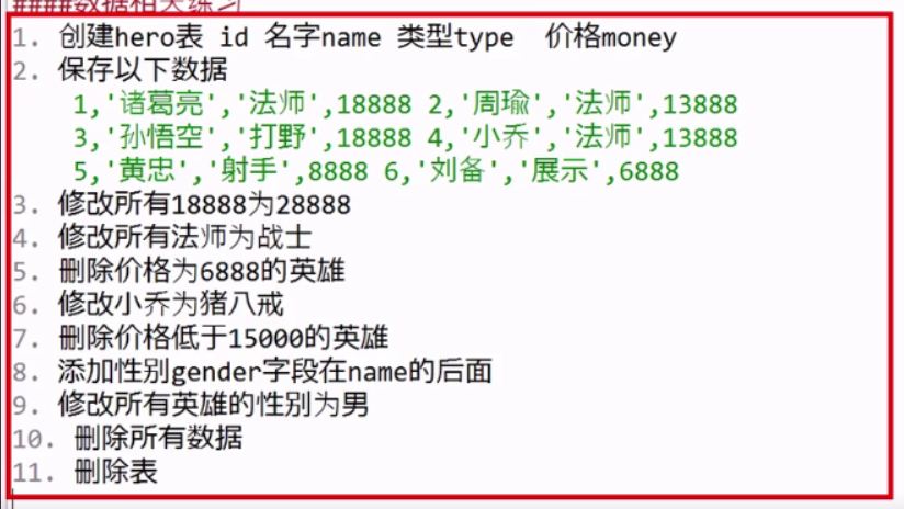 -格式:create table 表名(字段1名 字段1类型,字段2名 字段2类型)