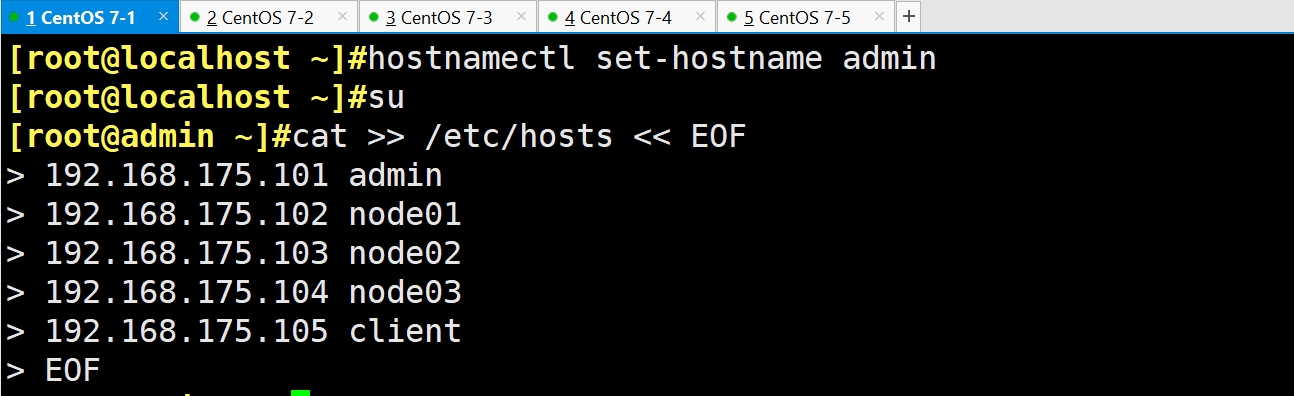 admin 192.168.175.101 admin(管理节点负责集群整体部署)、client
