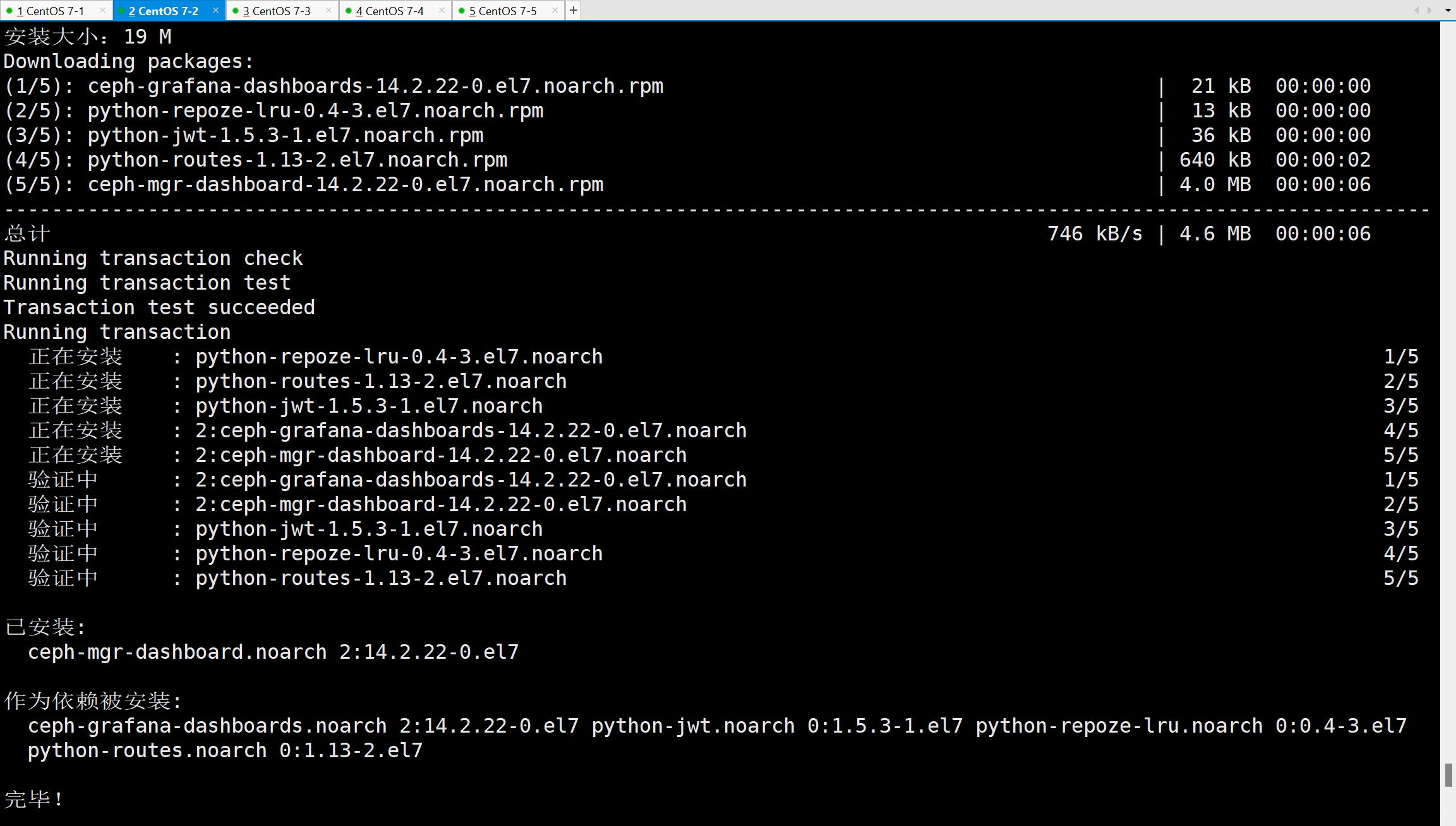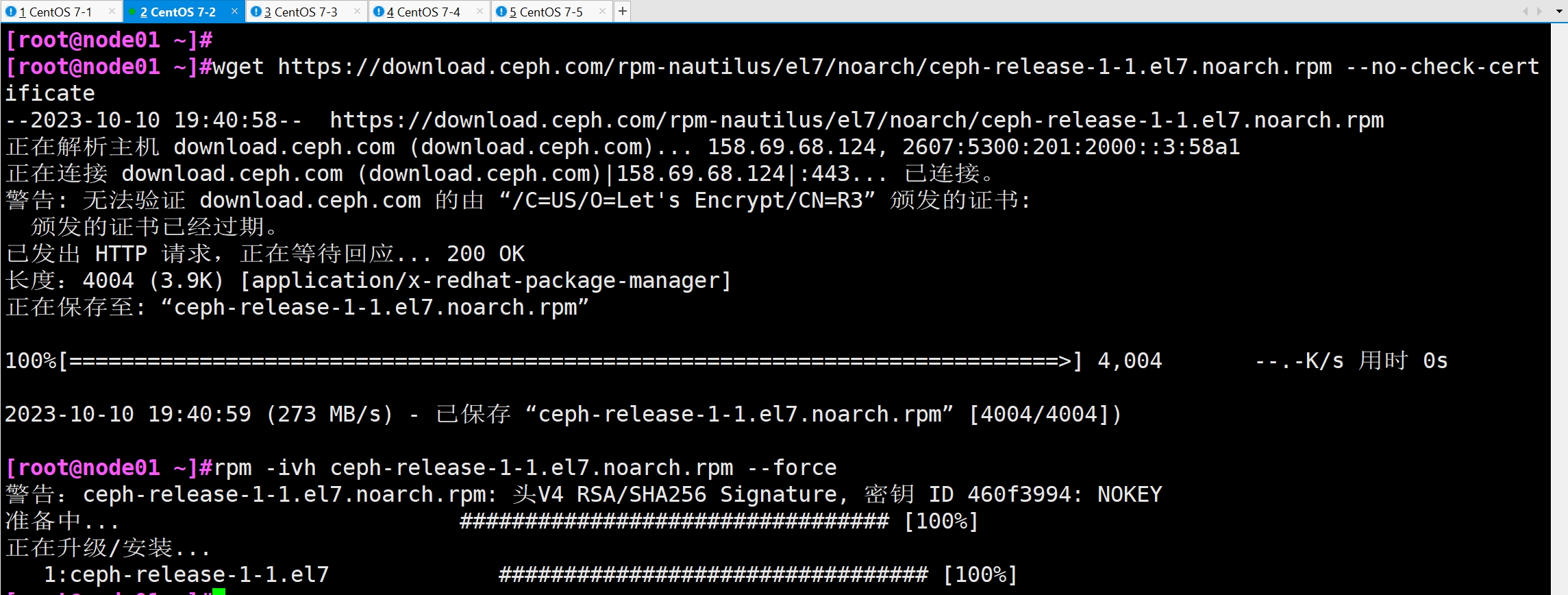 - 在其它节点上执行下面的命令将 Ceph 的安装包都部署上:
