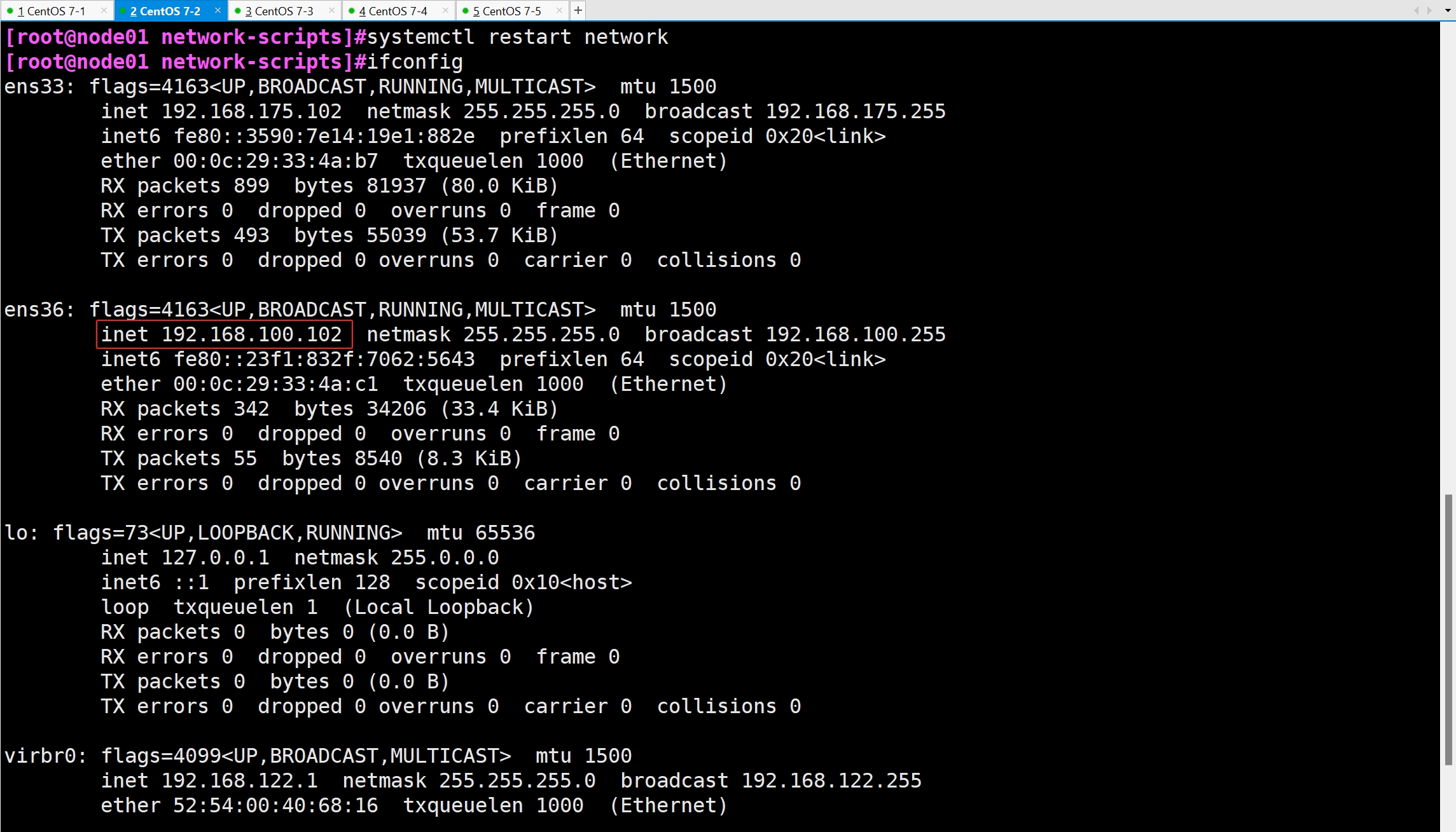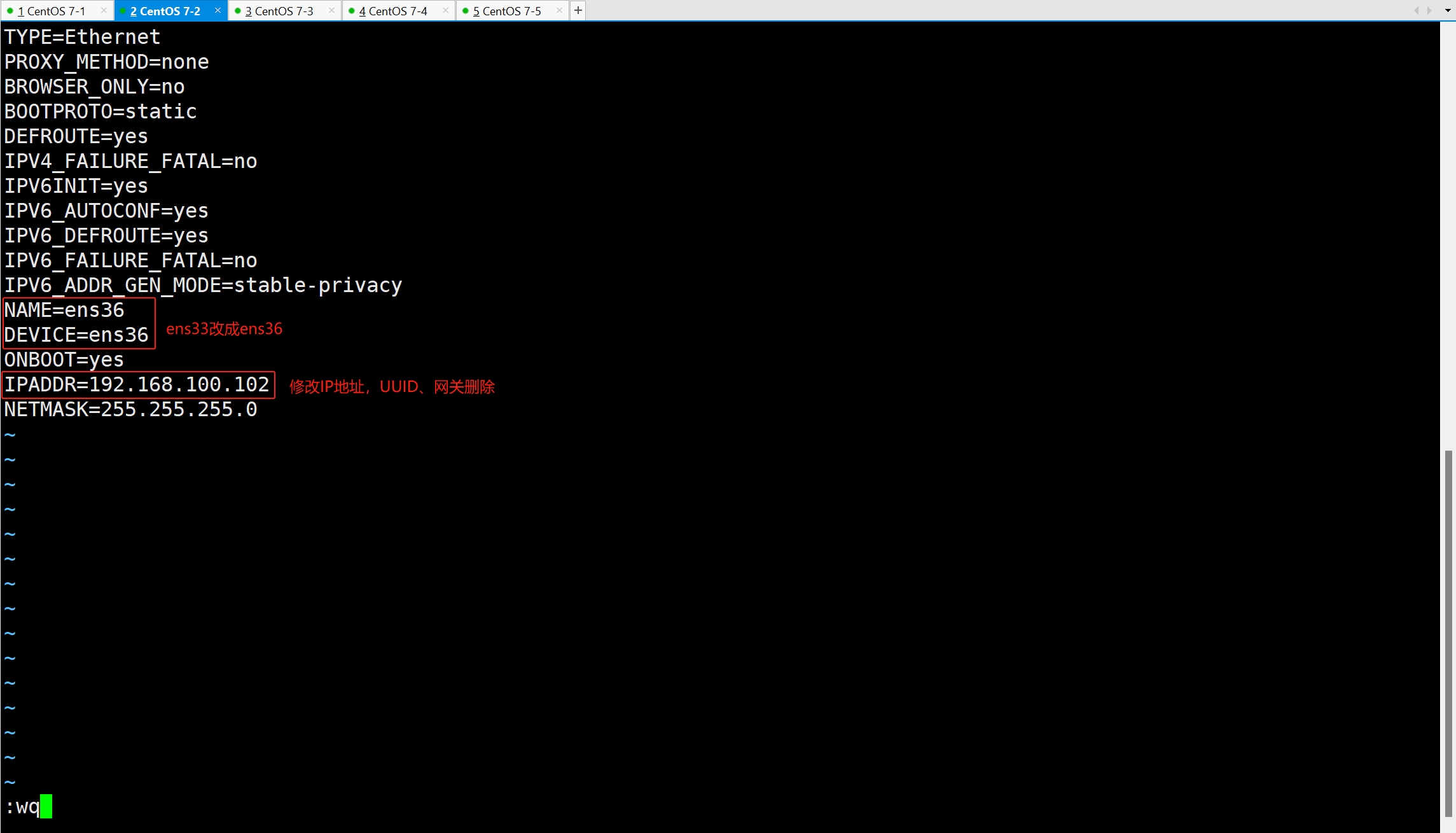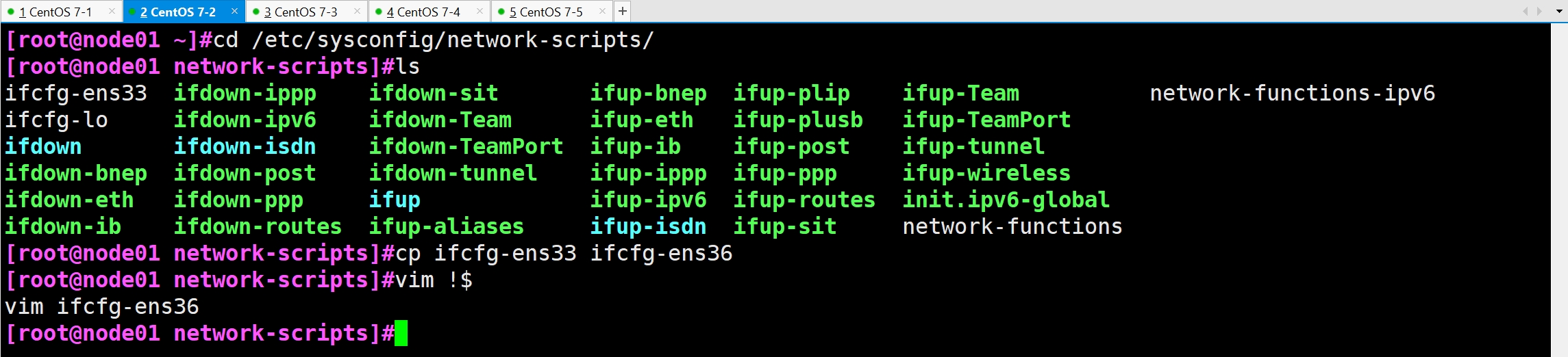 cp ifcfg-ens33 ifcfg-ens36