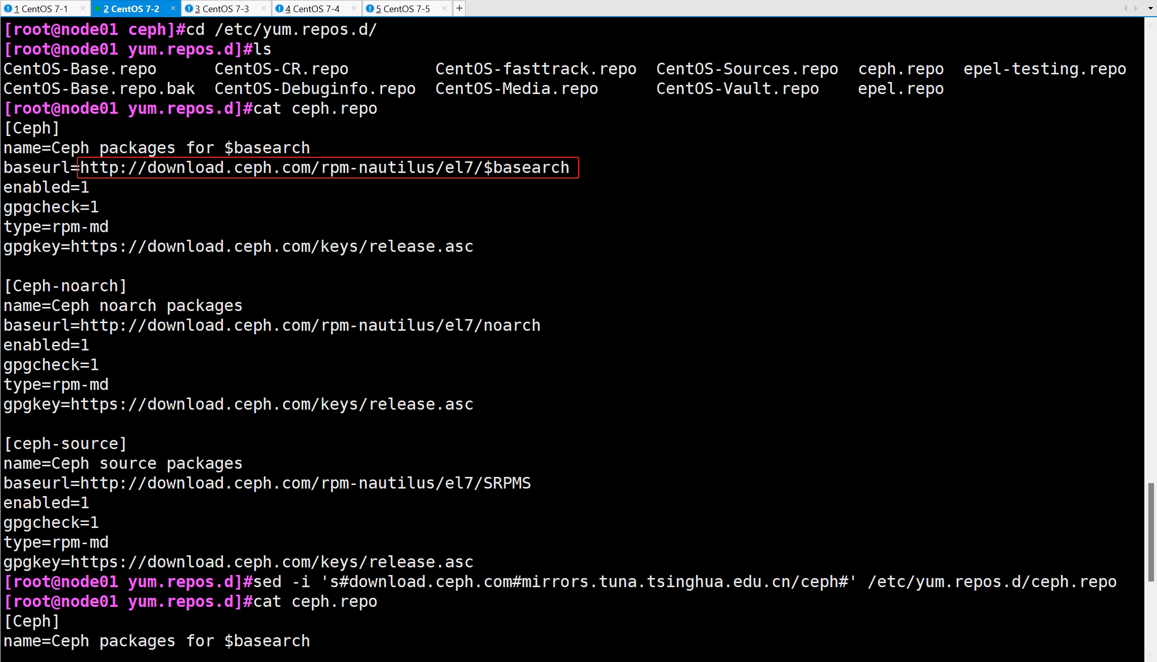 sed -i 's#download.ceph.com#mirrors.tuna.tsinghua.edu.cn/ceph#' /etc/yum.repos.d/ceph.repo