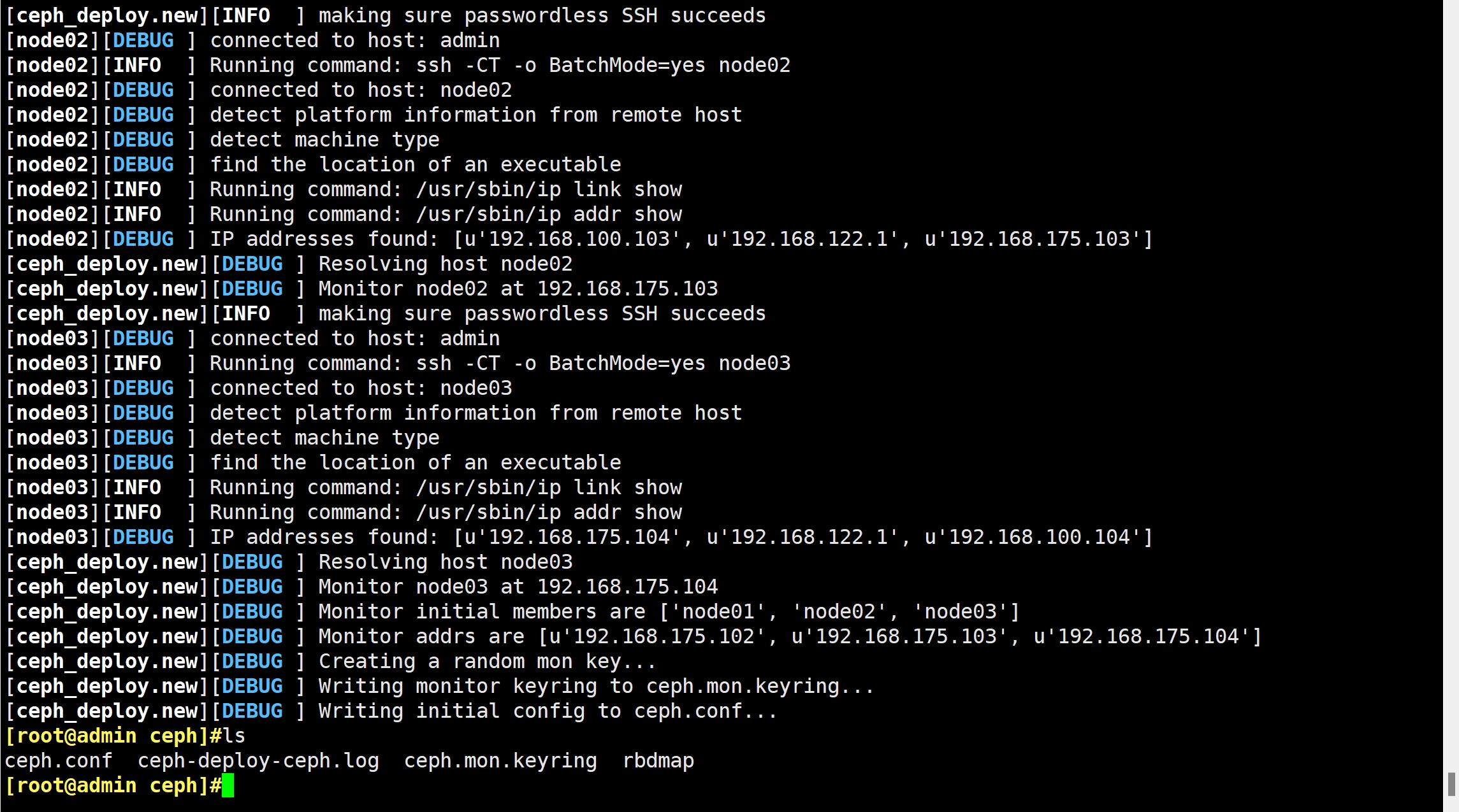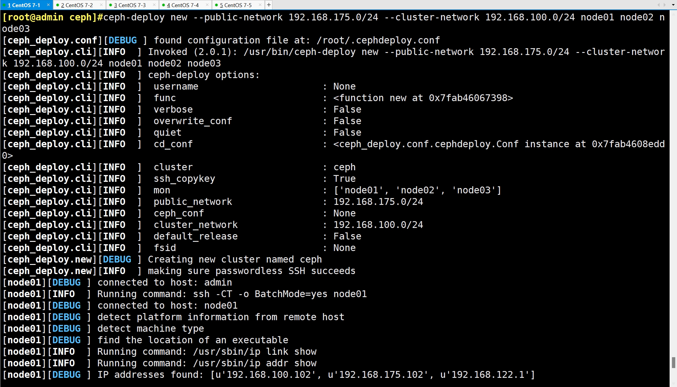 ceph-deploy new --public-network 192.168.175.0/24 --cluster-network 192.168.100.0/24 node01 node02 node03