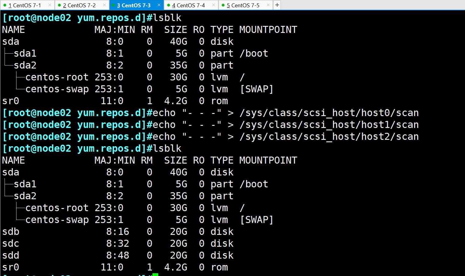 #每个节点添加三个硬盘
