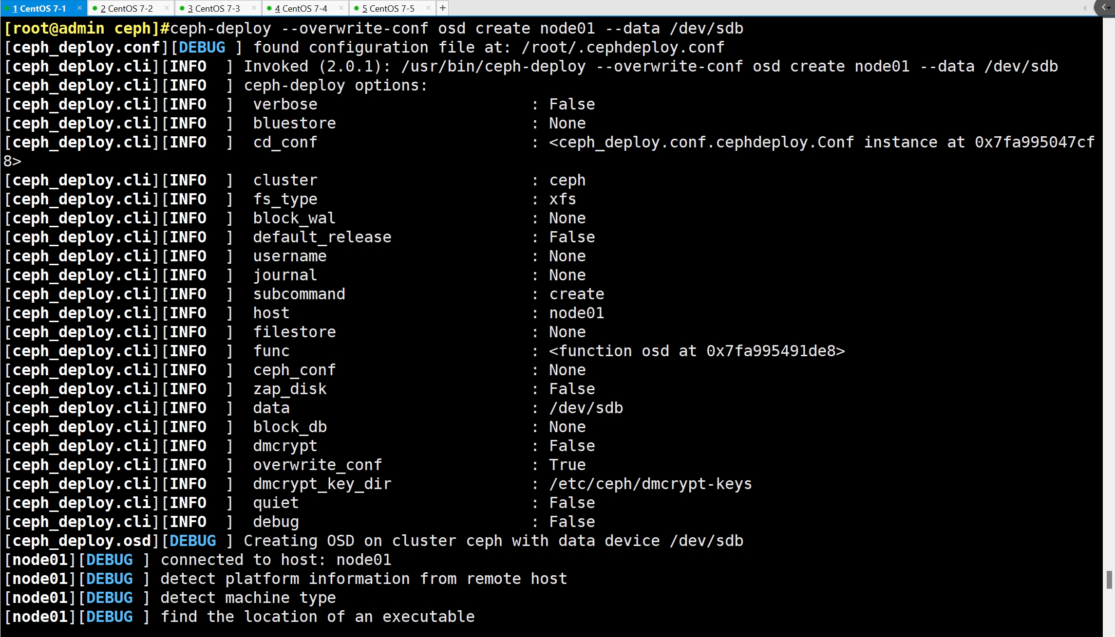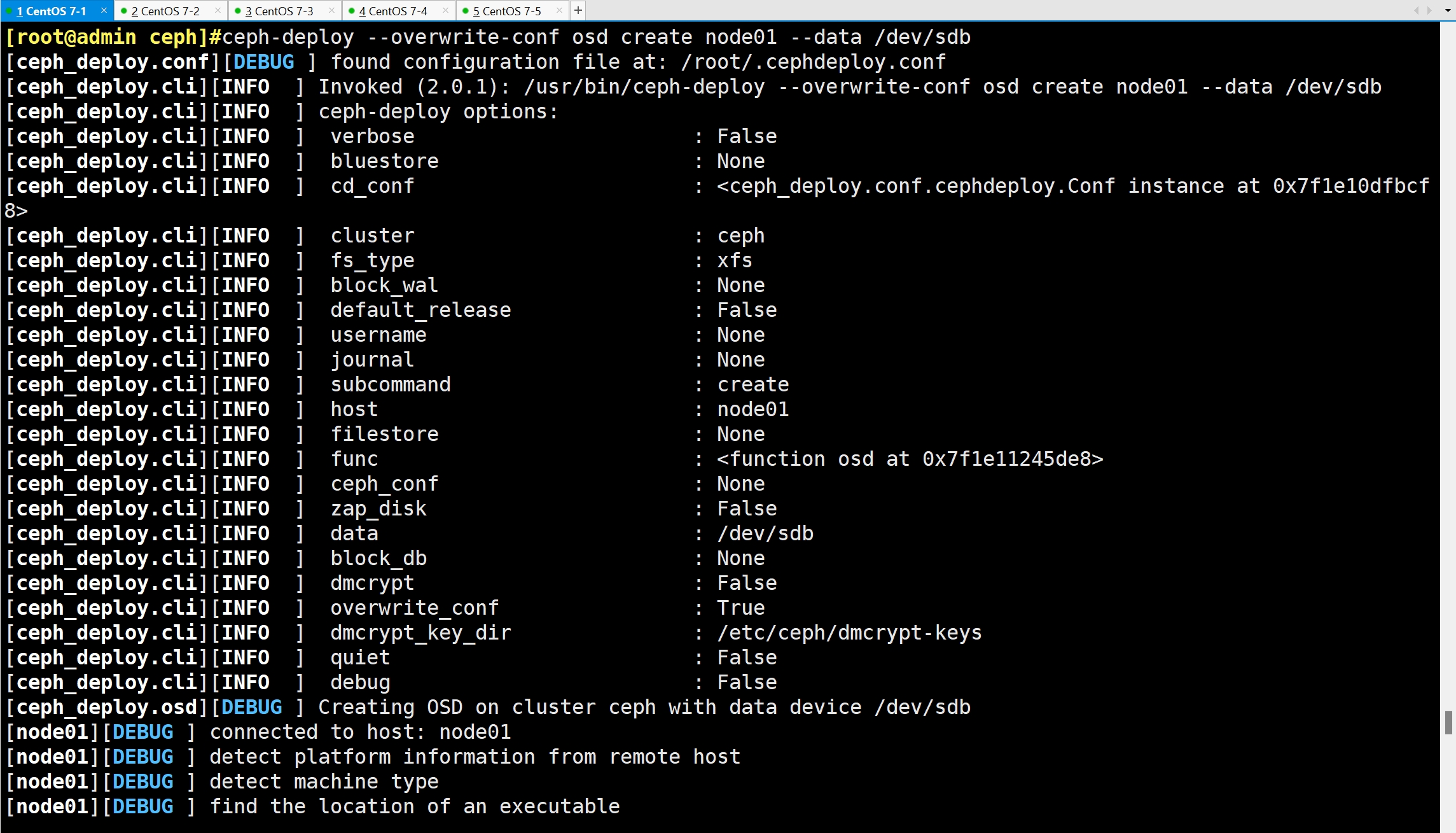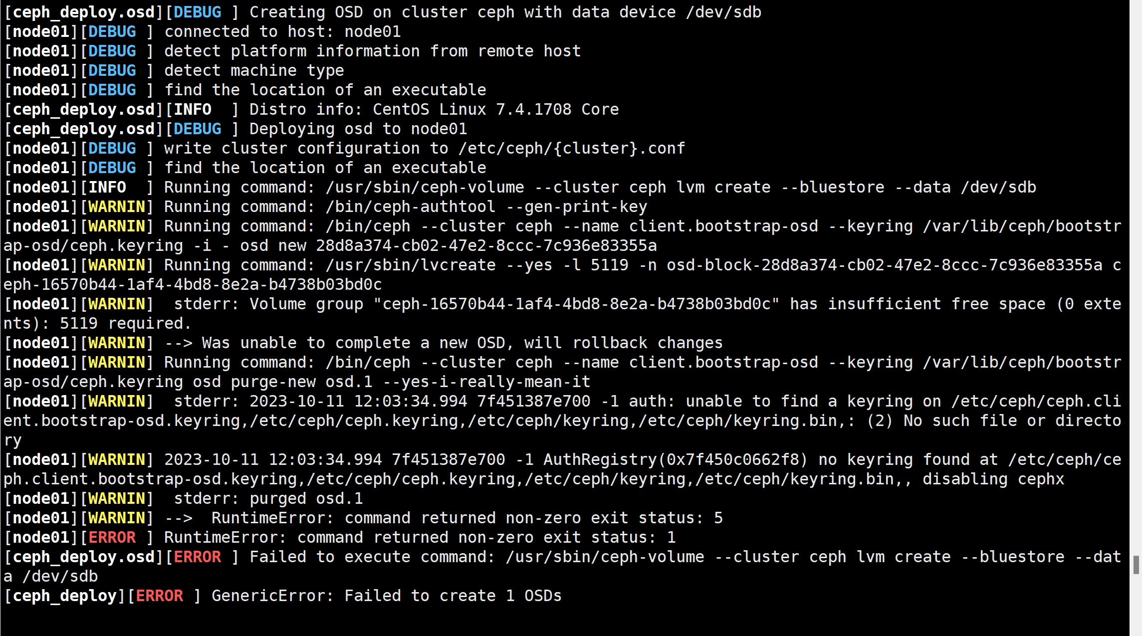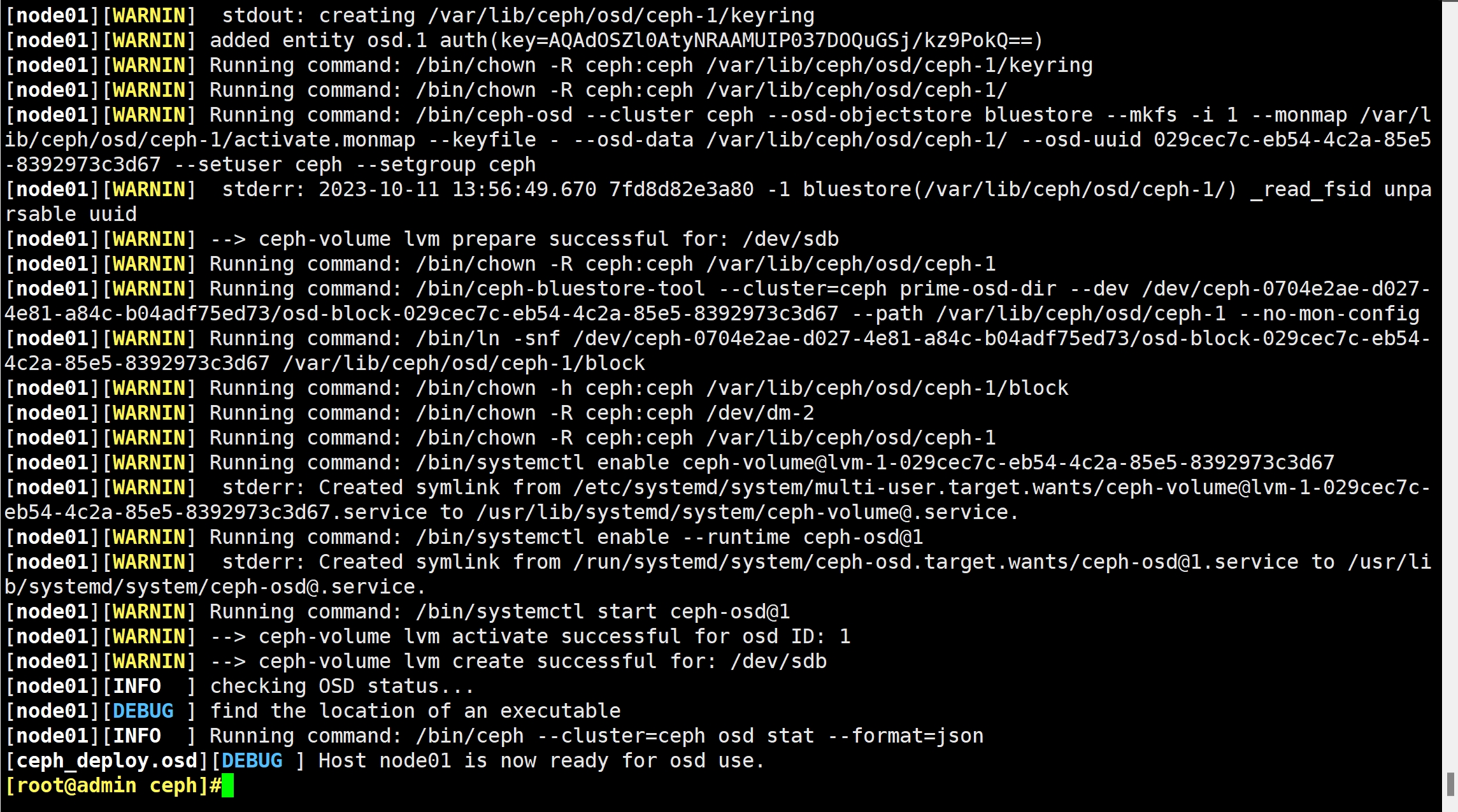 ceph-deploy --overwrite-conf osd create node01 --data /dev/sdb