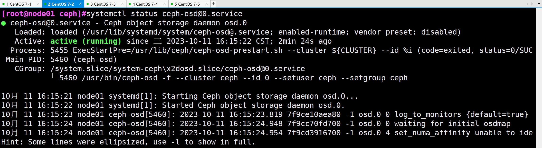 systemctl status ceph-osd@0.service
