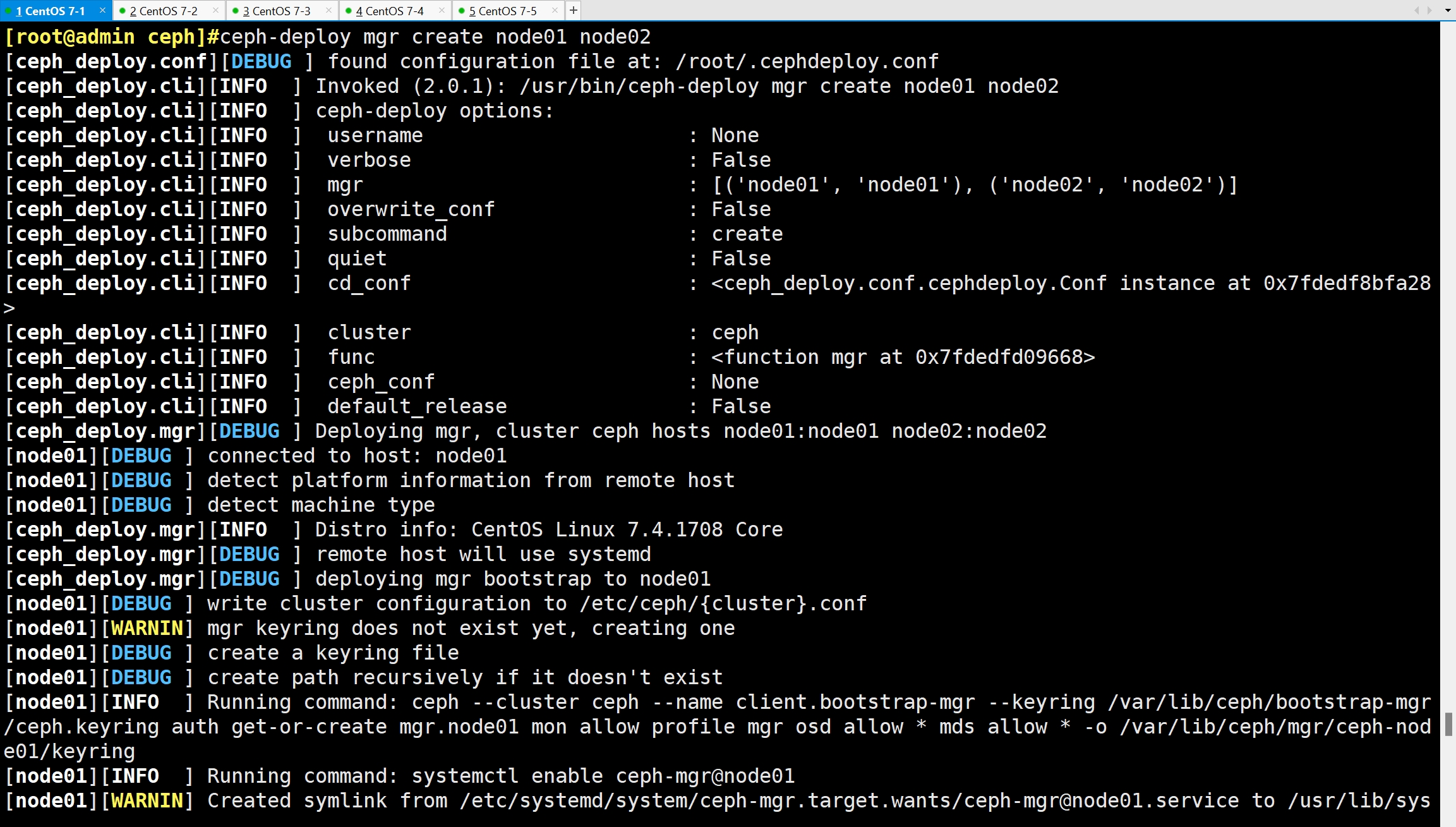 ceph-deploy mgr create node01 node02