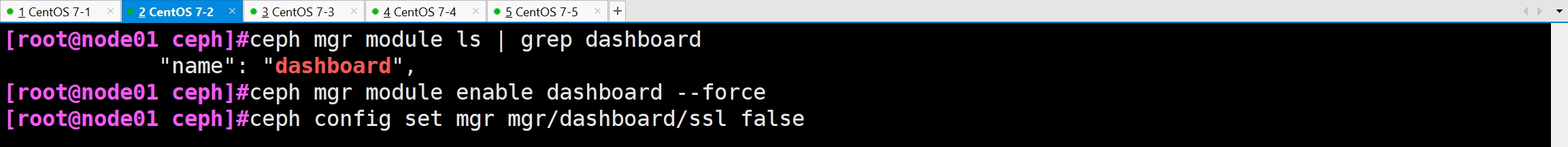 ceph mgr module ls | grep dashboard