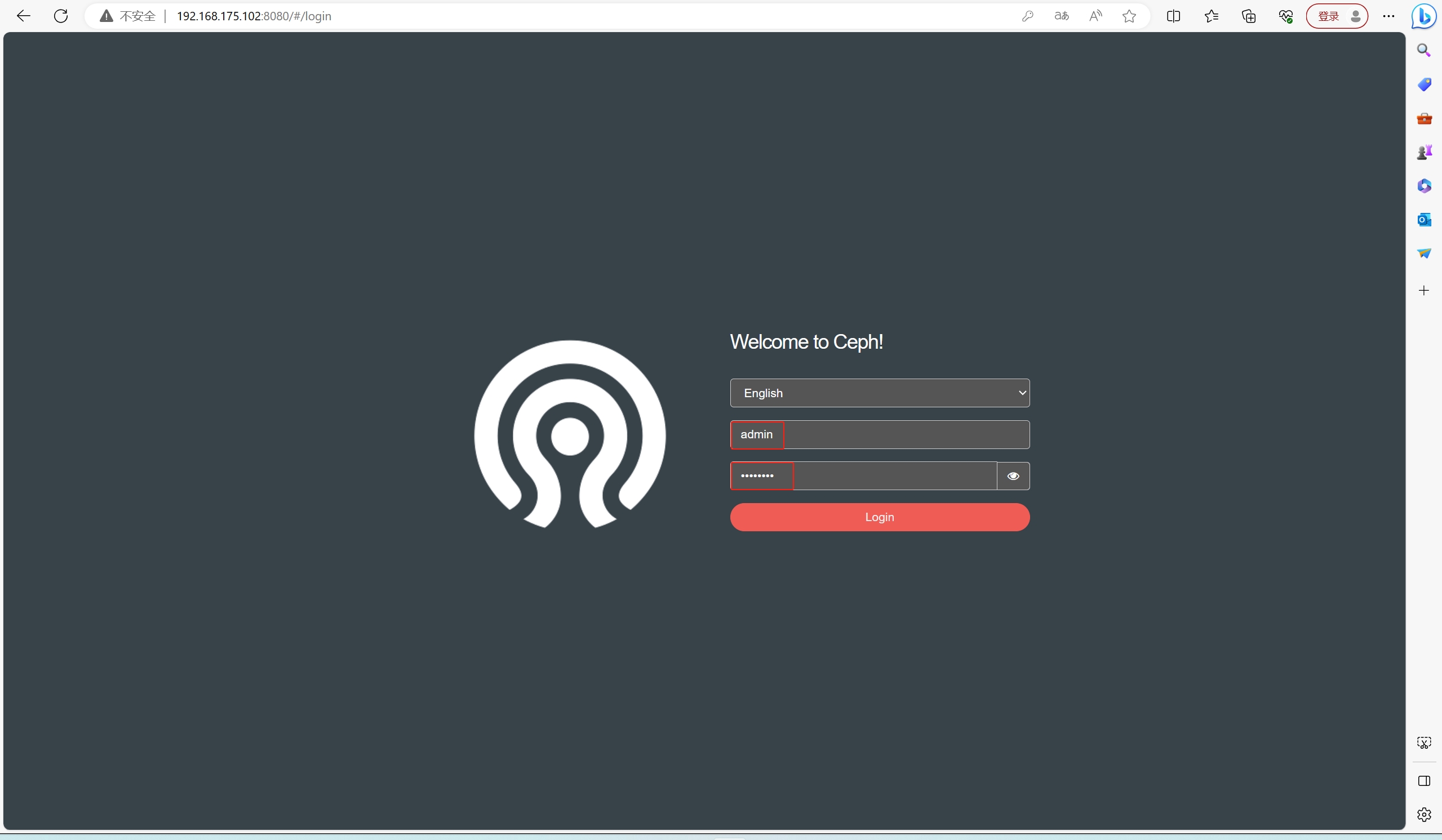 浏览器访问:http://192.168.175.102:8080,账号密码为 admin/12345678