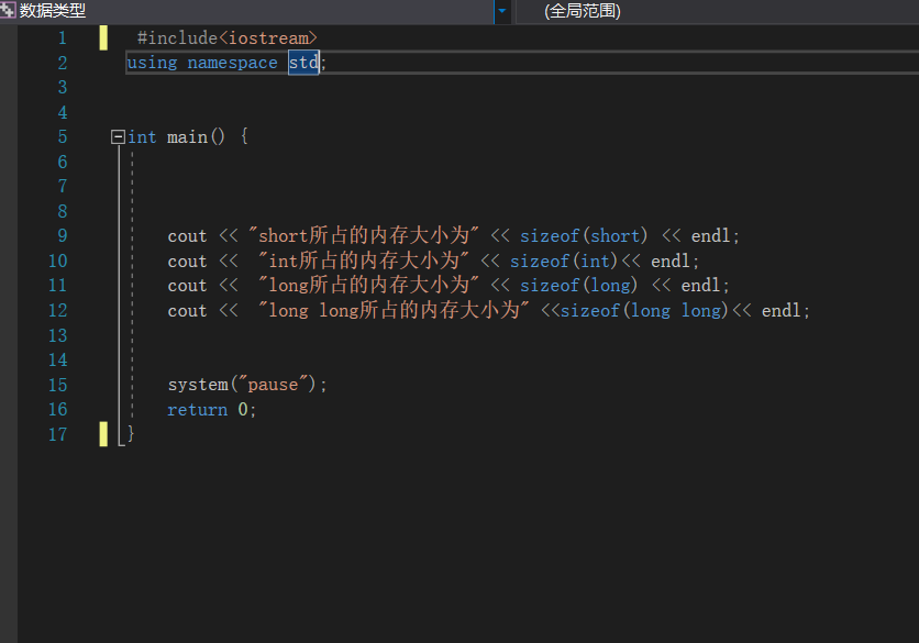 在这里我们的操作数为整型的几个类型,他们会返回所对应的内存字节数,我们想知道数据类型的内存大小时,它是一种简单快捷的方法